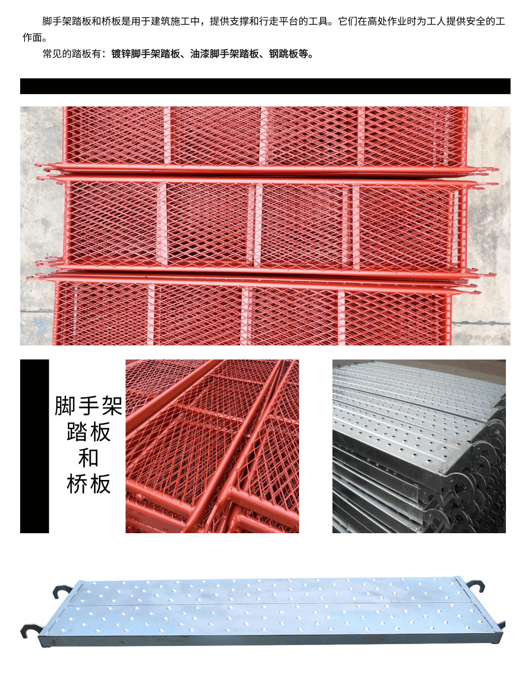 脚手架踏板和桥板是用于建筑施工中,提供支撑和行走平台的工具。它们在高处作业时为工人提供安全的工作面。